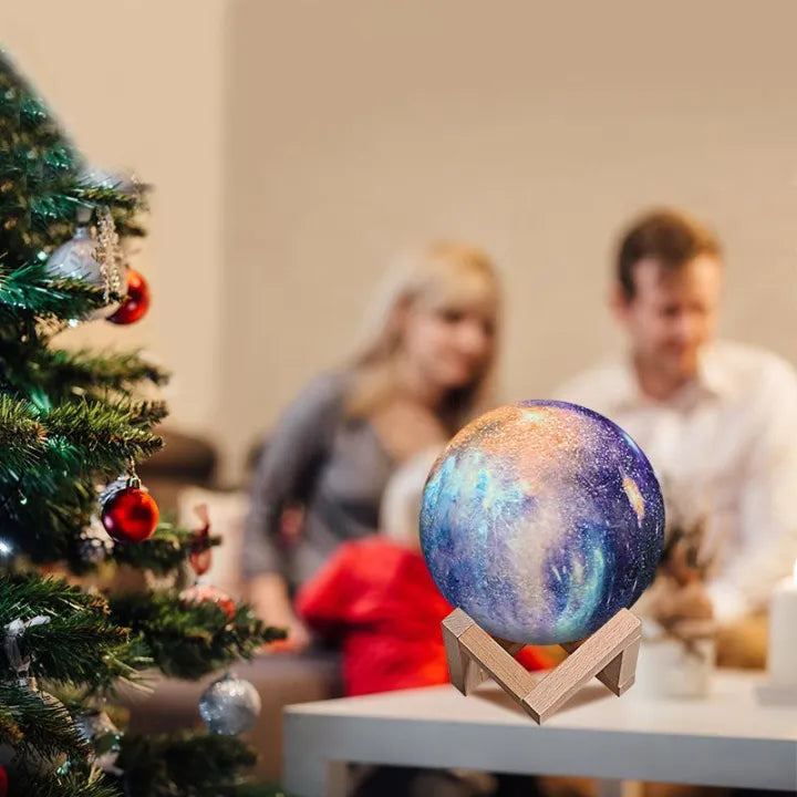 Dzięki eleganckiej lampie księżycowej możesz zasypiać każdej nocy pod migoczącym niebem. Niezależnie od tego, czy dla dzieci, które spokojnie zasypiają, czy dla dorosłych, którzy chcą zapomnieć o stresie dnia, lampa tworzy relaksujące środowisko dla każdego.