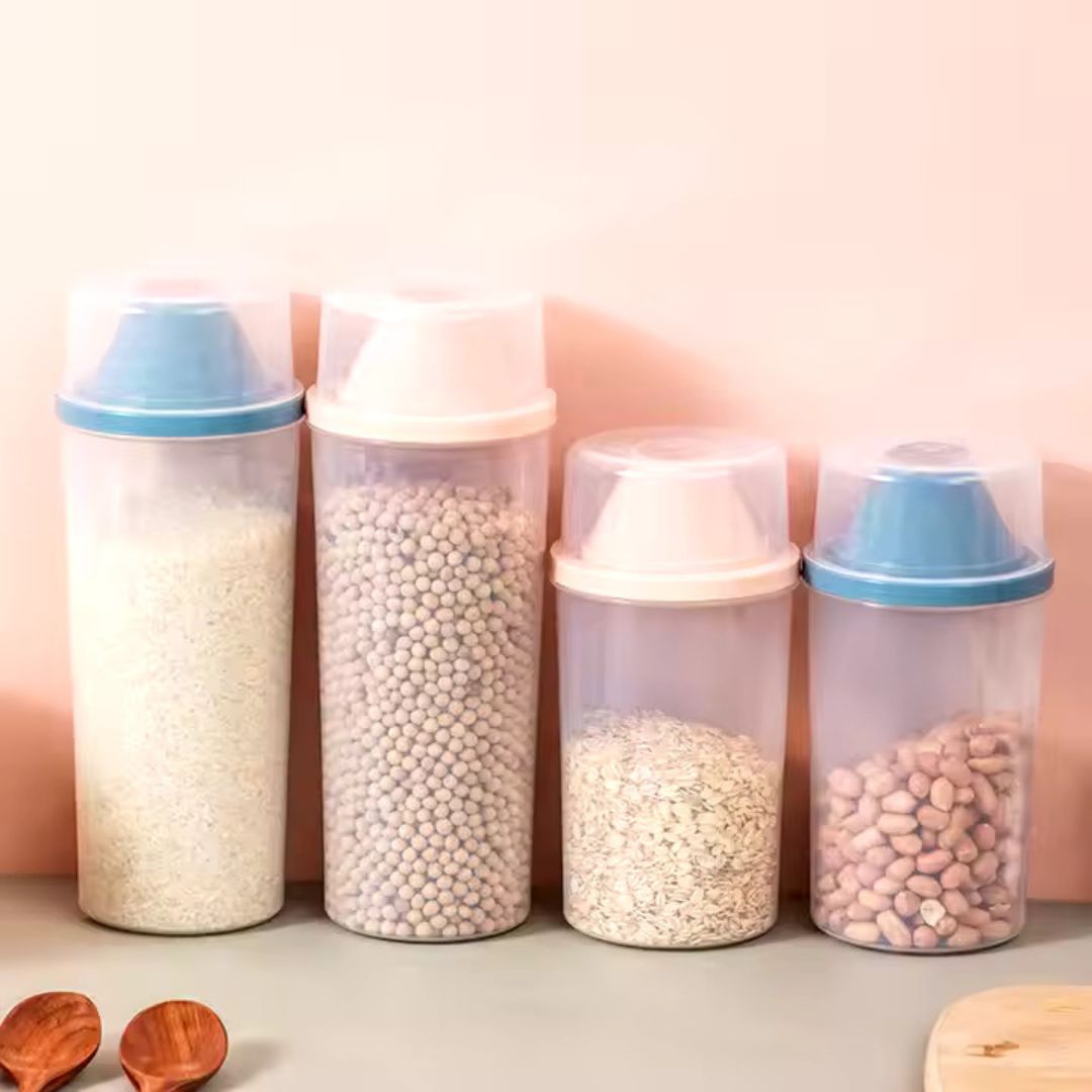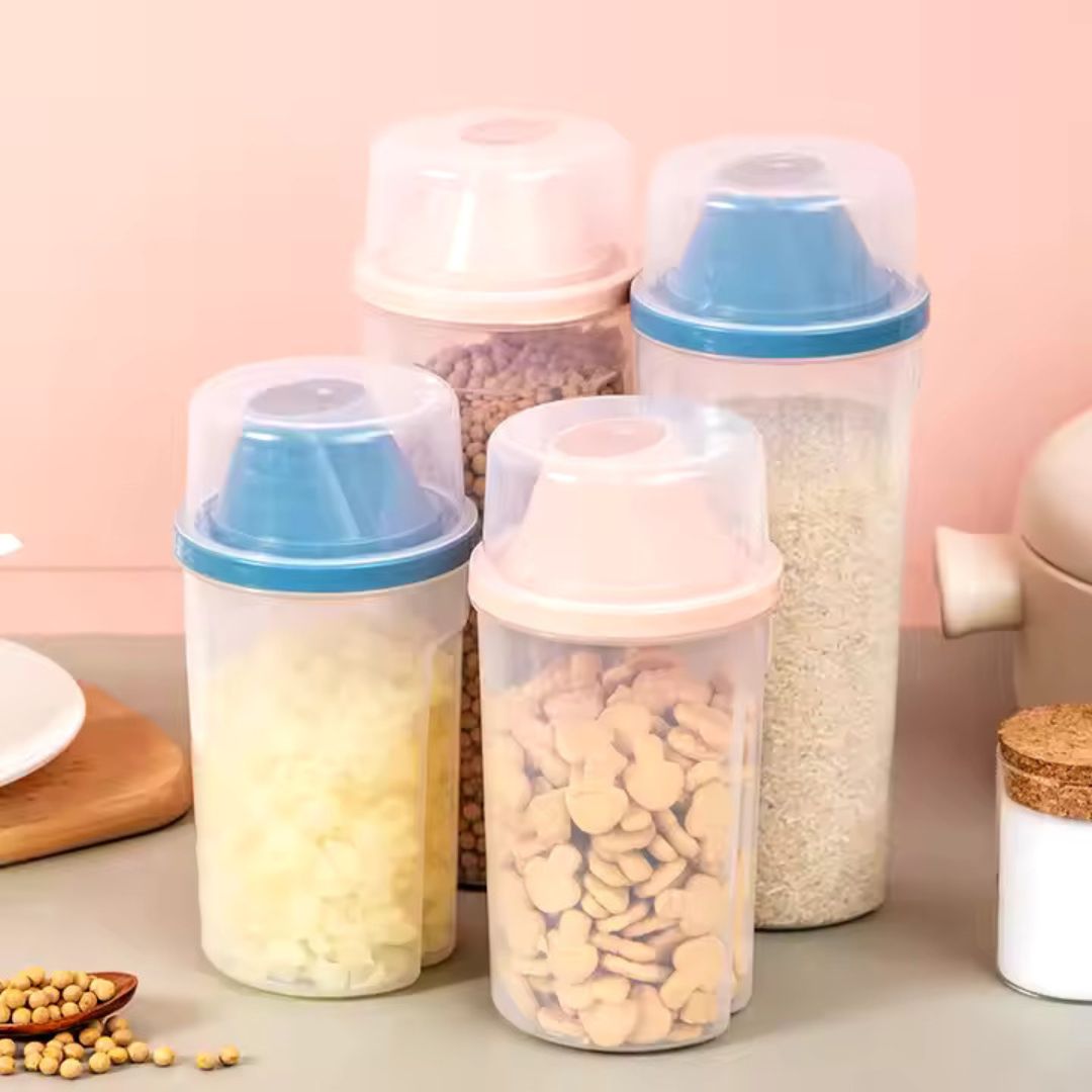 - 🍚 Wszechstronne zastosowanie: Idealny do ryżu, musli, orzechów, płatków śniadaniowych i wielu innych – uniwersalny pojemnik do Twoich zapasów!